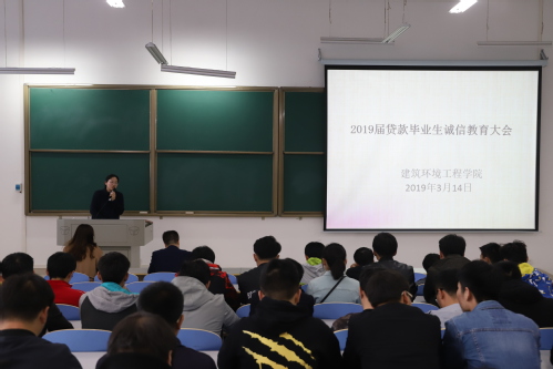 为进一步开展两节课教育,做好国家助学贷款的宣传和教育工作,提升我院贷款毕业生的诚信还款意识,3月14日,建筑环境工程学院在双创楼108教室召开2019届贷款毕业生诚信教育大会,我院党总支副书记彭东来、全体专职辅导员及2019届贷款毕业生出席会议。