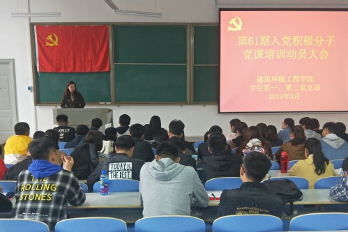 为进一步加强入党积极分子教育,提高积极分子党性觉悟,3月21日中午,建筑环境工程学院于双创楼108室举行第六十一期入党积极分子党课培训动员大会。学生第一党支部书记寇誉元及第六十一期入党积极分子参加此次大会。