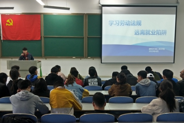 在“五一”国际劳动节即将到来之际,为增强我院学生法律意识,提高法制观念,4月25日下午,建筑环境工程学院于双创楼108室开展“学习劳动法规,远离就业陷阱”主题教育活动。学院各年级党员代表及第61期入党积极分子参加此次活动。