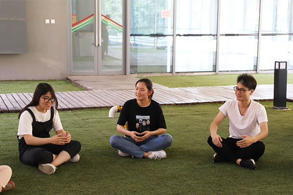 此次活动共分为五个环节。第一环节,陈思萌老师以音乐《BINGO》为触媒、通过音乐的旋律,让参与同学以身体的律动与音乐融合,起到破冰热身的作用,活跃了现场气氛,充分调动了大家的热情,提高活动的参与度。第二环节《数字抱团》,大家跟随鼓乐的节拍点,以漫步或快走的形式依数字迅速机敏的找到伙伴,从而组合为“合作伙伴”。现场氛围紧张和热烈,大家专注地聆听引导者的鼓声与口令,欢声笑语贯穿着整个活动环节。第三环节大家席地而坐,进行歌谣《先有啥》的禁声游戏,由其他组的成员指定所要禁声的词,大家开始比赛,难度环节层层增进,充分考验了同学们的反应力和专注度,更进一步调动了大家积极性,增加了彼此间的亲密感,增添了活动的趣味性。第四个环节是让大家用音乐唱出自己,分享心境故事。即将远行的学子纷纷用音乐进行自我介绍,讲到了临近毕业,面对就业或读研,心中有欢乐,有遗憾,有焦虑,有忐忑,有憧憬……陈思萌老师也结合亲身经历进行交流,帮助舒缓了毕业前的心绪。最后,陈思萌老师带领同学围坐成一个圆圈,引导大家学习了非洲鼓的击打方式,3种音色结合不同节奏型的演奏,并借助沙锤、串铃、三角架等各具特色的手鼓乐器,共同演奏了《铃儿响叮当》、《掀起了你的盖头来》。这种以鼓圈合奏的形式,将手鼓乐器与歌曲旋律完美地融合在一起,优美的和声,感染了会场的每一位,体验到动静结合的美,体会了团队协作的精彩。