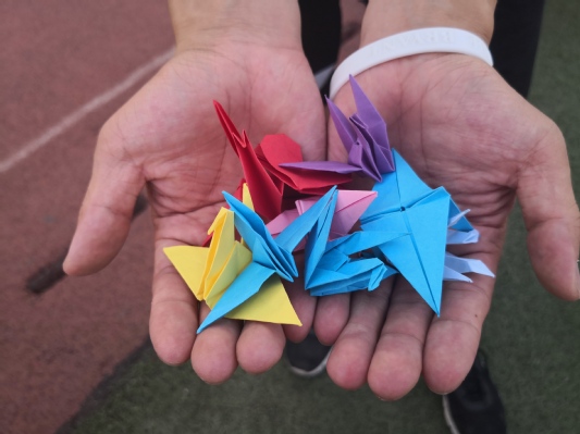 活动在活力十足的“抢凳子”游戏中拉开帷幕,伴随着音乐的响起与停止,同学们集中精神,迅速抢凳,在欢声笑语中拉近了彼此的距离。在“你画我猜”游戏环节中展现了同学们之间的默契程度,大家从抽象、或具象的图画中,凭借着对伙伴的充分了解,迅速猜出了答案;在“两人三足”游戏中,同学们相互依靠、相互鼓励,仿佛绑住的还有同学们的心,在同学们此起彼伏的呐喊声中,一队队都冲过了终点,冲过的是终点,走进的却是每位同学的内心。最后,“趣味折纸”环节中,同学们将对大学的憧憬、对朋友的祝福和对自己的期望写在纸上,叠成了一个个象征着希望的千纸鹤,并将千纸鹤送给同学,让希望在同学们的手里传递下去。