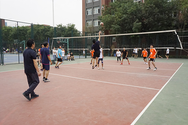 本次友谊赛采用三局两胜制,随着一声哨响,比赛在轻松、愉快的氛围中拉开帷幕。双方队员顶着炎炎烈日,在赛场上挥洒着汗水,展开激烈的争夺。一个个精彩的扣球、拦网、网上争球,让赛场的气氛不断升温,双方比分也是僵持不下,毕业生队一马当先,先下一城。短暂的休息后,第二局比赛在队员的加油声中开始,教职工队凭借着球场的经验,调整战术,展开进攻,迅速与毕业生队拉开比分差距,毕业生队也不甘示弱,队员之间相互鼓励积极配合,沉着冷静地处理好每个球,尽管将比分缩小了差距,但教职工队依然稳稳拿下了第二局的胜利。来到赛点局,双方队员越战越勇,最终教职工队以微弱的优势赢得比赛。