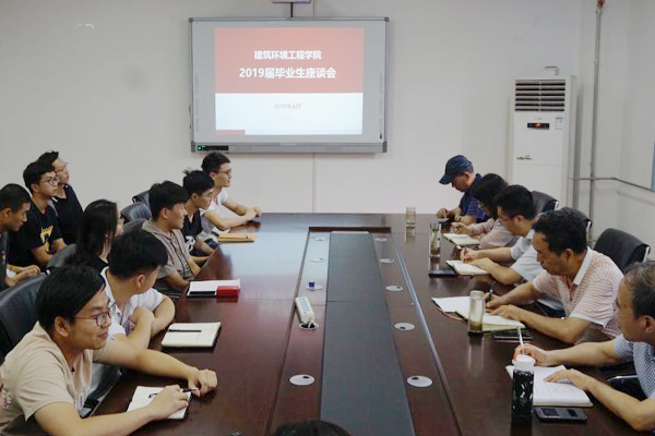 2019年6月20日下午,建筑环境工程学院在双创楼507会议室召开2019届毕业生座谈会。学院党总支书记刘吉彬、院长宋寅卯、副院长陈继斌、曹祥红、副书记彭东来、各系主任和全体辅导员老师及2019届毕业生代表参加座谈。座谈会由彭东来副书记主持。