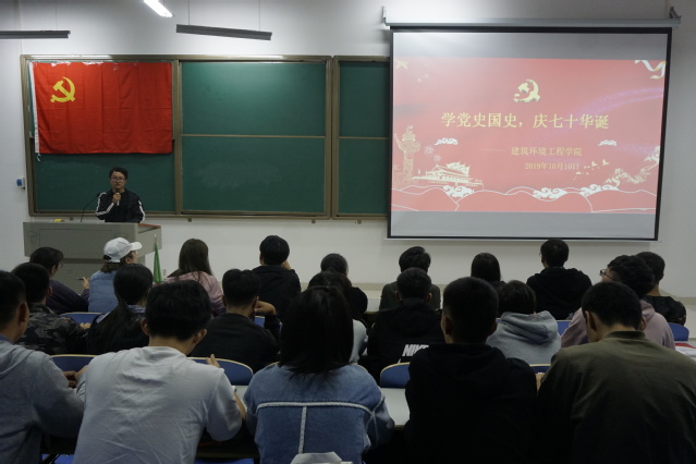 为庆祝新中国成立七十周年,激发广大学生爱党爱国热情,10月10日,建筑环境工程学院于双创楼108开展“学党史国史,庆七十华诞”主题教育活动。建筑环境工程学院学生党员代表、第62期入党积极分子培训班学员参加此次活动。
