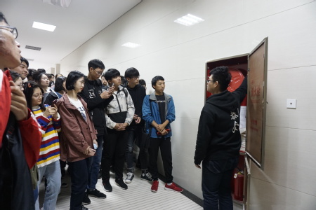 活动中,大学生消防安全协会的工作人员为大家详细讲解了教室、宿舍、食堂、实验室等场所的消防安全知识及灭火器、消防水泵的使用方法,以真实案例警示大家重视消防安全,对生命负责,防患于未“燃”。在消防安全知识趣味竞答环节中,同学们热情高涨,踊跃答题。题目内容涵盖消防器材的正确摆放与使用、如何预防消防事故的发生、发生消防事故时如何正确逃生求救以及事故后应承担的相应法律责任等多个方面,使同学们在答题中不断增强安全意识、掌握消防安全知识。最后,同学们共同参观了地下停车场消防设施及系统,了解了自动喷水灭火系统、消火栓给水系统、防烟和排烟系统以及防火门设施等,进一步丰富了专业知识,提升了火灾逃生技能。