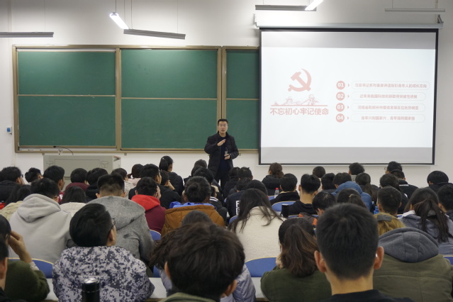 团课中,彭书记结合习近平总书记关于青年的系列讲话,讲述了新时代青年大学生的成长方向和历史使命,号召广大青年学生要不断刻苦努力、开拓视野,在实现伟大中国梦的生动实践中练就过硬本领。随后,彭书记结合具体实例介绍了近年来我国在科技创新方面取得的突破性进展,鼓励大家积极参与创新实践,在实践中锤炼创新创业能力。接着,彭书记结合河南省及郑州市整体发展的区位优势,激励同学们从实际出发,找准自身定位,结合学校博士授权单位建设的中心工作,拼几个春夏秋冬、赢一个无悔人生。最后,彭书记强调,青年兴则国家兴,青年强则国家强,广大青年学生应把握时代机遇,把个人理想融入国家理想,个人奋斗融入国家事业,努力成长为能担当民族复兴大任的时代新人。