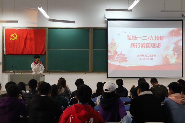 为引导青年学生继承光荣传统,坚定理想信念,11月21日晚,建筑环境工程学院在双创楼108室举行“弘扬一二·九精神,践行爱国理想”主题诗歌朗诵会。建筑环境工程学院第62期入党积极分子培训班全体学员参加此次活动。