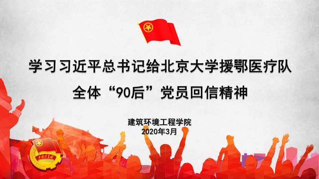 为进一步引导团员青年勇挑重任、主动作为,3月28日至4月2日,建筑环境工程学院各班级团支部组织学习习近平总书记给北京大学援鄂医疗队全体“90后”党员回信精神。