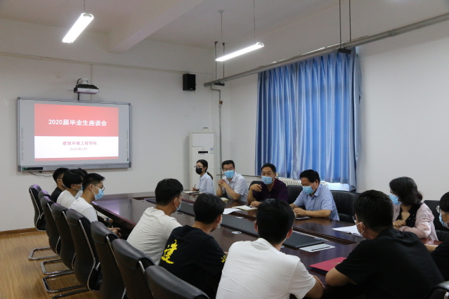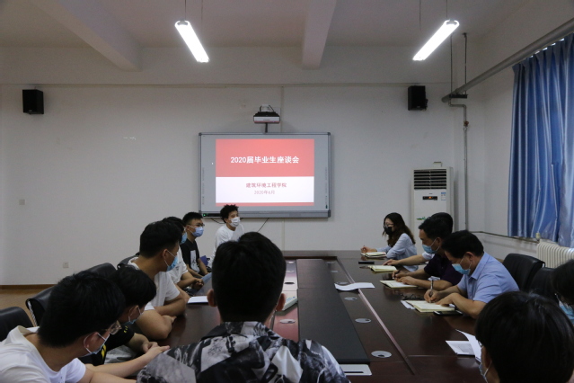 2020年6月19日上午,建筑环境工程学院在双创楼507会议室召开2020届毕业生座谈会。学院党委书记刘吉彬、院长杨存祥、副书记彭东来、副院长曹祥红、全体辅导员及2020届毕业生代表参加座谈。座谈会由党委副书记彭东来主持。
