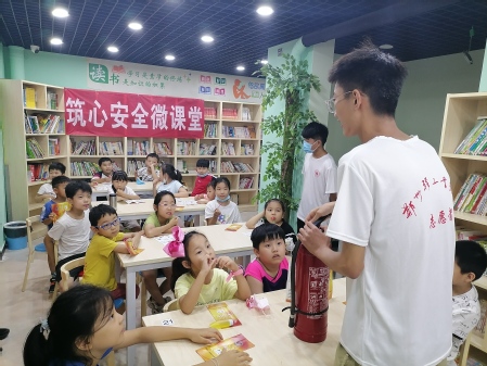 在荣邦城社区,志愿者为社区儿童们带来了“筑心消防微课堂”消防安全知识讲座。志愿者以幽默风趣的教学方式,带领小朋友们学习了家庭火灾隐患小知识、认识了各类消防器材标识,学会了及时逃离火场并准确地为消防员提供火灾信息。为进一步提高儿童的火灾应急能力,将知识转化为实践,在社区负责同志的协助下,志愿者组织小朋友们进行了一次火灾模拟逃生演习,小朋友们按照课堂上所学的口诀“手捂口鼻走楼梯,弯腰低头靠右行”不慌不乱,安全快速地转移到了安全区域。