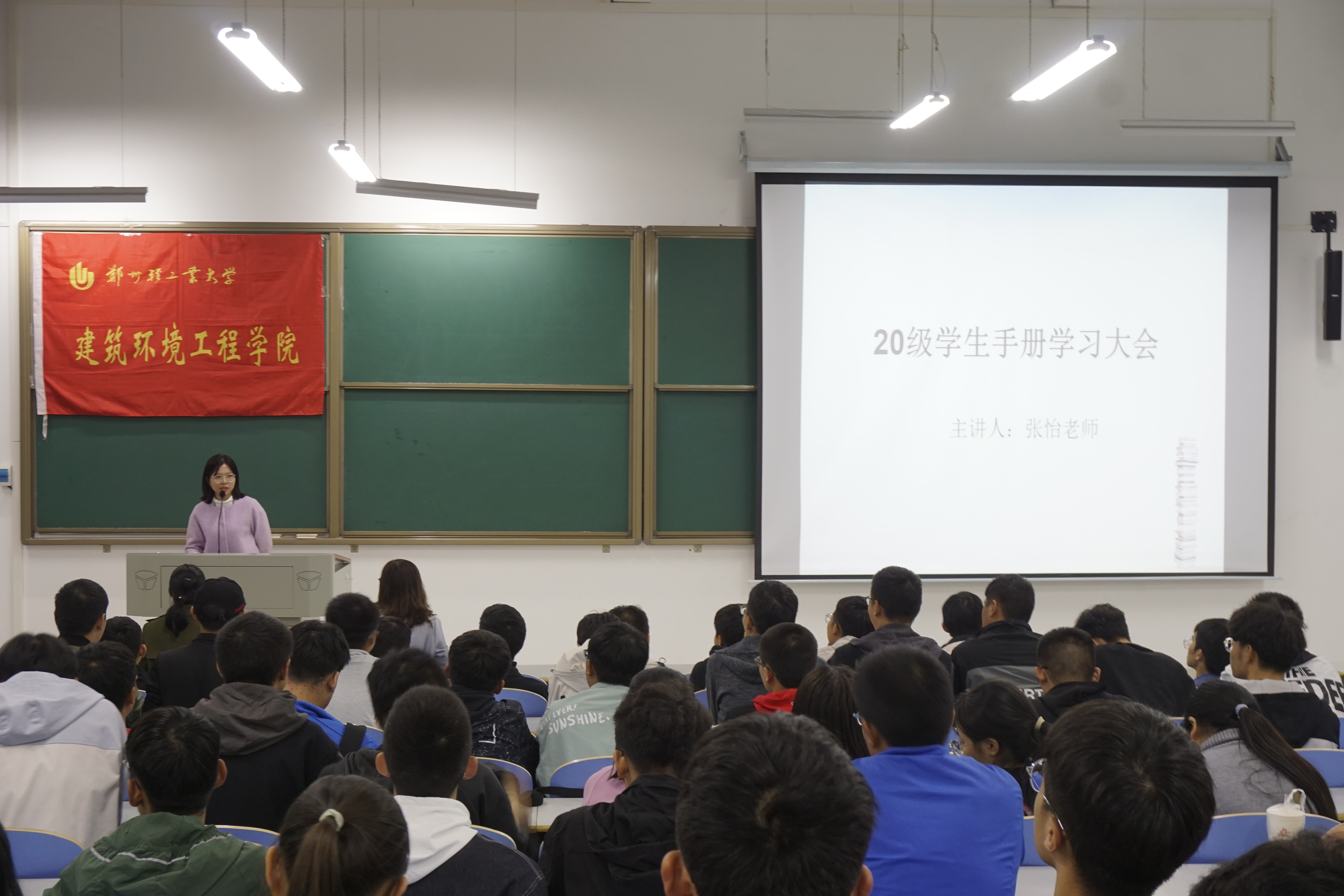 为规范学生行为,切实抓好学生的日常教育、管理和服务工作,让新生尽快了解学校的规章制度,适应大学新环境,近日,建筑环境工程学院于双创楼108教室开展了2020级新生入学教育《学生手册》集中学习活动。