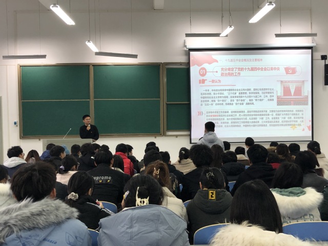活动中,曾昊同学详细介绍了党的十九届五中全会概况及主要精神,讲解了到二〇三五年基本实现社会主义现代化远景目标和“十四五”时期经济社会发展的指导思想、遵循原则、主要目标及重点工作方向,从“国力上台阶”“发展开新局”“民生增福祉”三个方面回顾了国家“十三五”经济社会发展的巨大成就,揭示了五年规划在“中国奇迹”里的关键作用。最后,曾昊同学号召青年学生要用实际行动贯彻五中全会精神,希望大家把握时代机遇、扛牢历史责任,坚定理想信念、练就过硬本领,既要志存高远、又要脚踏实地,助力中华梦圆、唱响时代华章,努力成长为担当民族复兴大任的时代新人。