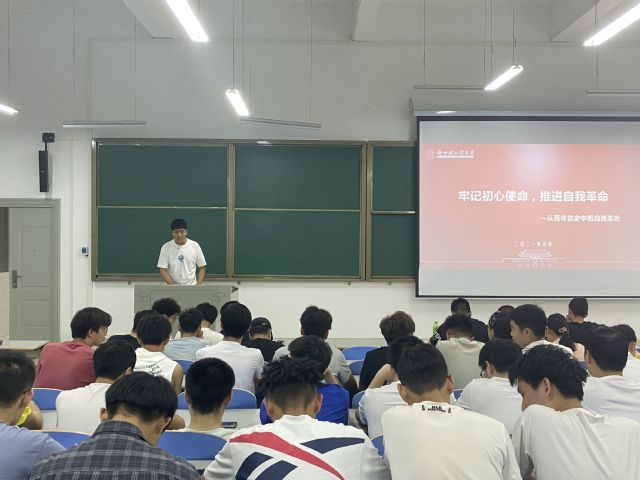 为进一步加强大学生思想政治教育,落实立德树人根本任务,结合中国共产党建党一百周年党史学习教育,引导广大青年学生了解党的光辉历史、传承红色基因,6月6日,建筑环境工程学院大学生宣讲团成员走进建筑电气与智能化18-01班团支部,开展“学习党史强信念,不忘初心跟党走”主题宣讲。