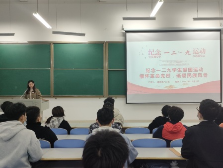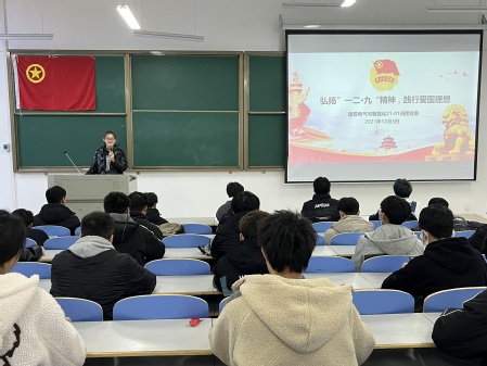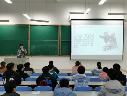 活动中,各班级团支部通过PPT展示、观看影像资料、学唱红色歌曲、重温入团誓词等方式开展了形式多样、内容丰富的主题团日活动。在团支书的带领下,同学们共同学习了“一二·九”运动发生的历史背景、发展过程及历史意义,重温了青年学子在党的领导下组织和发起爱国救亡运动的伟大历史时刻,感悟了青年人的拳拳赤子心、殷殷家国情。大家深刻体会到,“一二·九”运动在中华民族解放运动的历史中植下了一个新的里程碑,永远刻下了不可磨灭的痕迹,它是抗战动员的运动、是准备思想和干部的运动、是动员全民族的运动,有着重大的历史意义。同学们沉浸在厚重历史氛围的同时有所思考和感悟,纷纷表示要不忘历史、不忘初心,知史爱党、知史爱国,努力为实现“两个一百年”奋斗目标、实现中华民族伟大复兴的中国梦贡献智慧和力量。
