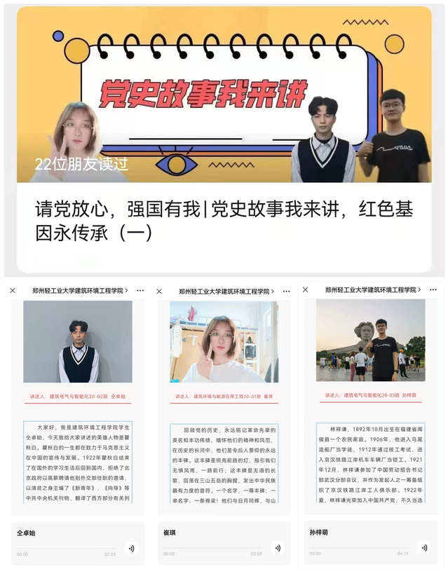 经过广泛宣传,青年学子热情响应、踊跃参与,学院从投稿的党史故事音频作品中遴选出优秀作品在学院微信公众号陆续展播。在革命先辈瞿秋白临难不屈的故事中,讲述人道出了“粉身碎骨全不怕,要留清白在人间”的精神;“人在阵地在”的杨根思英雄故事中,“三个不相信”精神激发了同学们开拓新征程的不竭动力;林祥谦烈士率先垂范、英勇斗争,“一身报国有万死,浩气冲天贯斗牛”的英雄气概彰显了全心全意为劳苦大众求解放的崇高品质。在一篇篇党史故事中,同学们深入学习英雄事迹,感悟先烈初心,砥砺奋进精神,传递家国情怀。