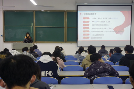 11月27日下午,建筑环境工程学院在双创楼108室举行团校培训班开班仪式。团委书记寇誉元介绍了本学年团校培训的整体安排及重要意义,表达了对与会团学骨干的期待与鼓励,勉励全体学员一要提升思想认识,提高政治站位,充分认识团校培训的重要性;二要珍惜培训机会,加强理论学习,提升自身政治素质;三要创新工作方法,提升工作效率,增强服务同学的水平及能力。她希望全体学员能够积极学习,勇于实践,在团校培训中收获进步与成长,努力成为勤于学习、善于创造、甘于奉献的青年学生政治骨干。随后,寇誉元以《学习党的十九届六中全会精神》为题进行团校培训第一讲。