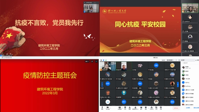 为提高学生疫情防范意识,近日,建筑环境工程学院在线上组织召开疫情防控主题班会,辅导员和全体学生参加。