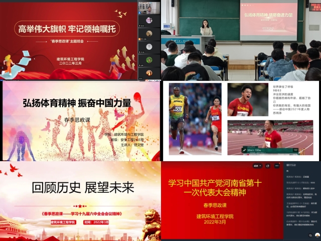 近日,建筑环境工程学院陆续在各年级召开“春季思政课”线上主题班会,全体辅导员和学生参加。