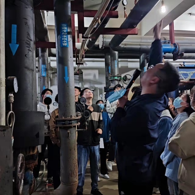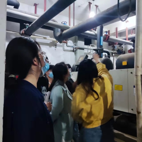 带领学生参观了学校的锅炉房、图书馆、体育馆、换热站等地点。现场实习内容包括安全教育、热水系统、换热站系统、风冷机组系统、水冷机组系统、多联机系统、二次供水系统、消防水系统、空调末端等。技术人员耐心讲解了设备需求调研、工程设计特点、运行维护特点等内容。
