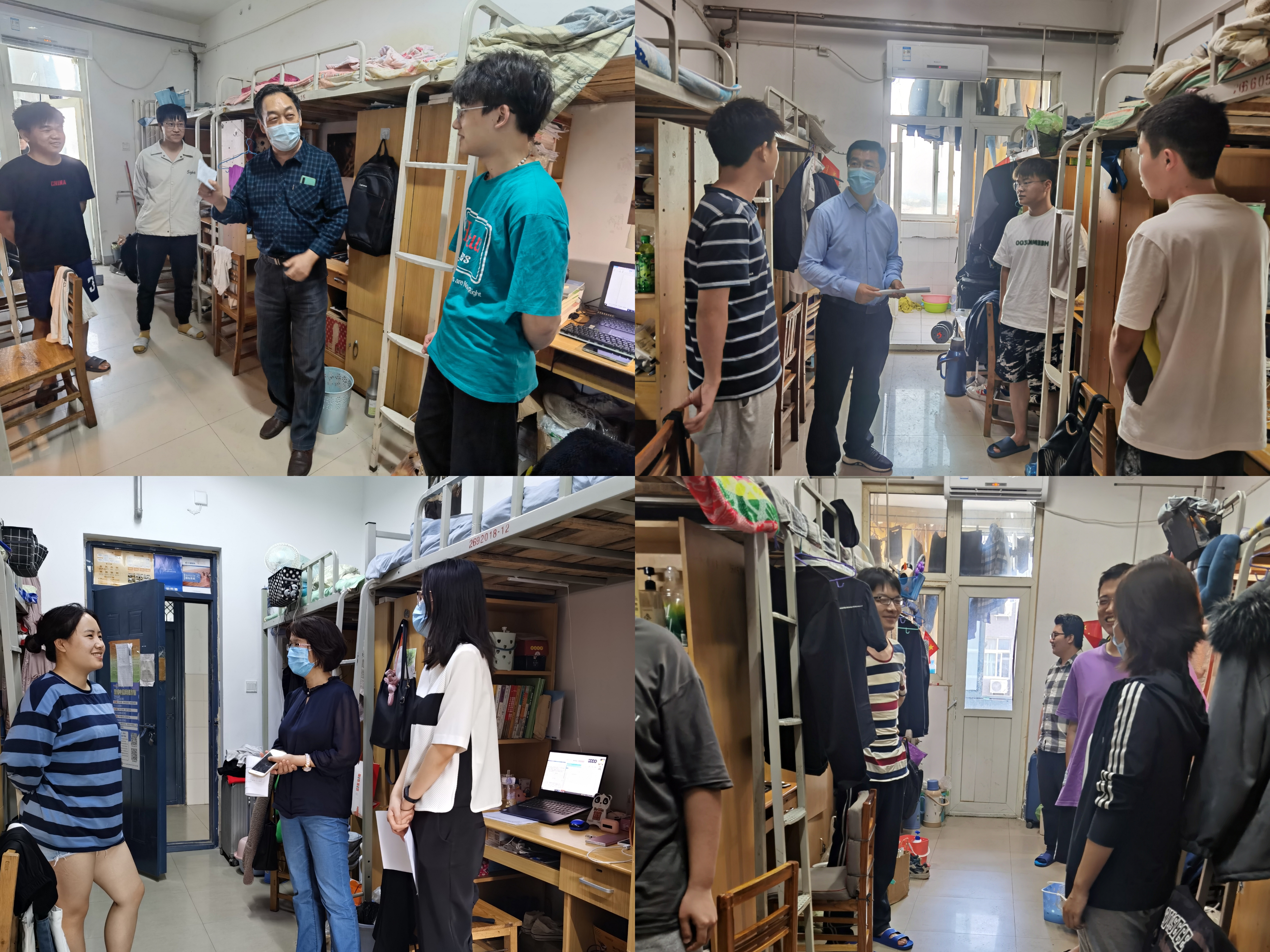 5月6日-7日,党委书记刘吉彬带领班子成员、学院辅导员深入走访学院宿舍,开展疫情防控网格化管理督查落实工作。刘书记逐一走进宿舍与大家进行工作交流,询问各级网格长落实疫情防控职责情况,要求大家要保持高度警醒,关键时刻不懈怠不侥幸不松劲,一旦出现异常情况及时上报。走访过程中,各位领导及辅导员们与学生进行了亲切交谈,询问同学们在学习、生活上的需求,认真倾听学生在校园疫情防控常态化下的学业及身心健康状况,嘱咐同学们要规律作息、按时做好线上课程学习,做好个人卫生防护,勤洗手,勤通风,保持宿舍卫生整洁,提高个人健康防护意识。