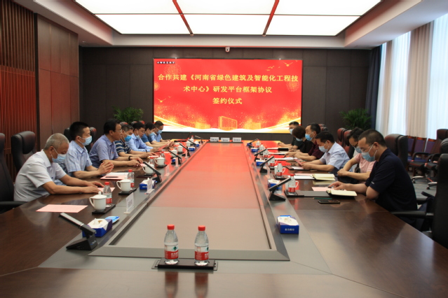 近日,合作共建《河南省绿色建筑及智能化工程技术中心》研发平台框架协议签约仪式在国机中兴工程咨询有限公司(以下简称“国机中兴”)成功举行。18新利直播 建筑环境工程学院党政领导党委书记刘吉彬,院长杨存祥,副院长曹祥红,国机中兴党总支书记、执行董事李振文,党总支副书记、总经理王自振以及校企双方相关人员共同出席签约仪式并进行座谈交流。李振文主持仪式。