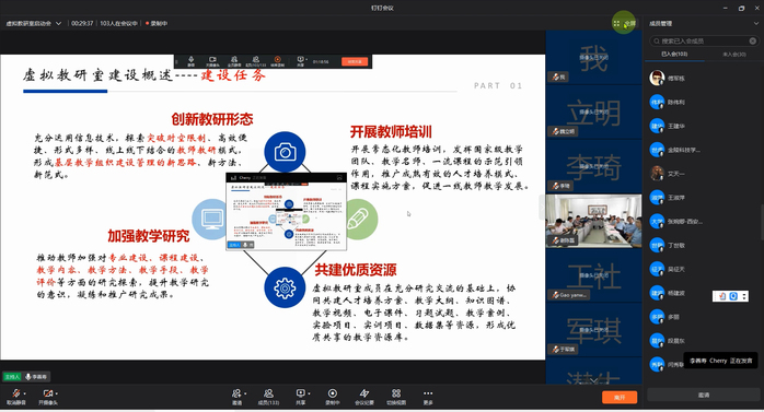安徽建筑大学副校长闵杰、中国建筑工业出版社高教分社社长高延伟、虚拟教研室主任方潜生等分别致辞。方潜生教授首先向与会教师传达了教育部相关文件精神,阐述了虚拟教研室建设的总体思路。安徽建筑大学杨亚龙教授进一步介绍了虚拟教研室建设思路、工作范围、工作形式、教学资源建设和工作计划等。