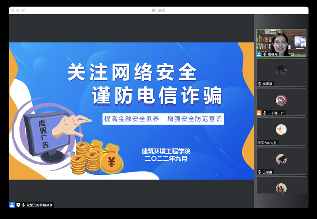 为营造安全健康文明的网络信息安全环境,进一步提高师生的网络安全意识和防护能力,近日,建筑环境工程学院组织开展以“网络安全为人民,网络安全靠人民”为主题的国家网络安全教育主题班会。