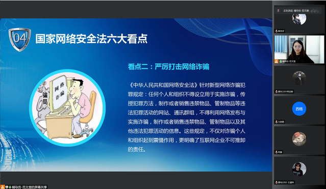 此次主题班会的开展,切实提高了每一位学生的网络安全意识,筑牢了网络安全防线,在全院营造共同学习、共同维护网络安全的良好氛围。