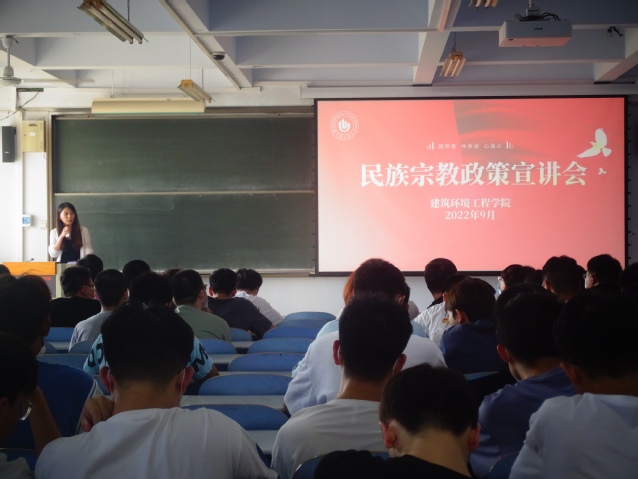 为做好2022年新学期学院宗教工作,培养学生正确的世界观、人生观、价值观。9月30日,建筑环境工程学院组织新生班级分批次在教三楼800召开民族宗教政策宣讲会,2022级新生辅导员范文楚和全体新生参加。