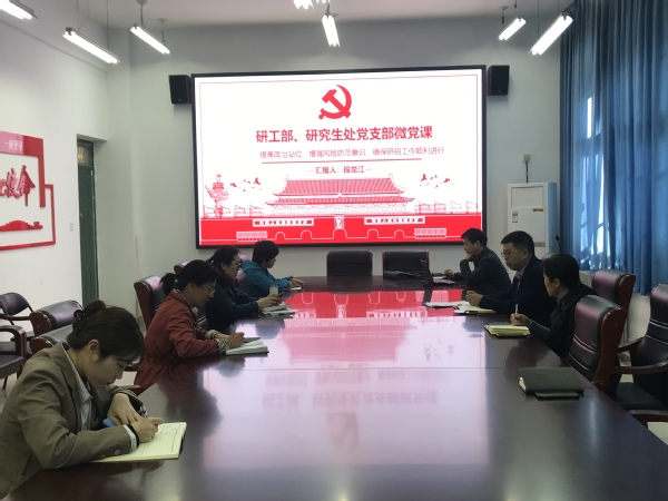 11月9日上午,研工部、研究生处党支部召开党员大会,段龙江同志为支部党员讲授主题为《提高政治站位、增强风险防范意识、确保研招工作顺利进行》的微党课。