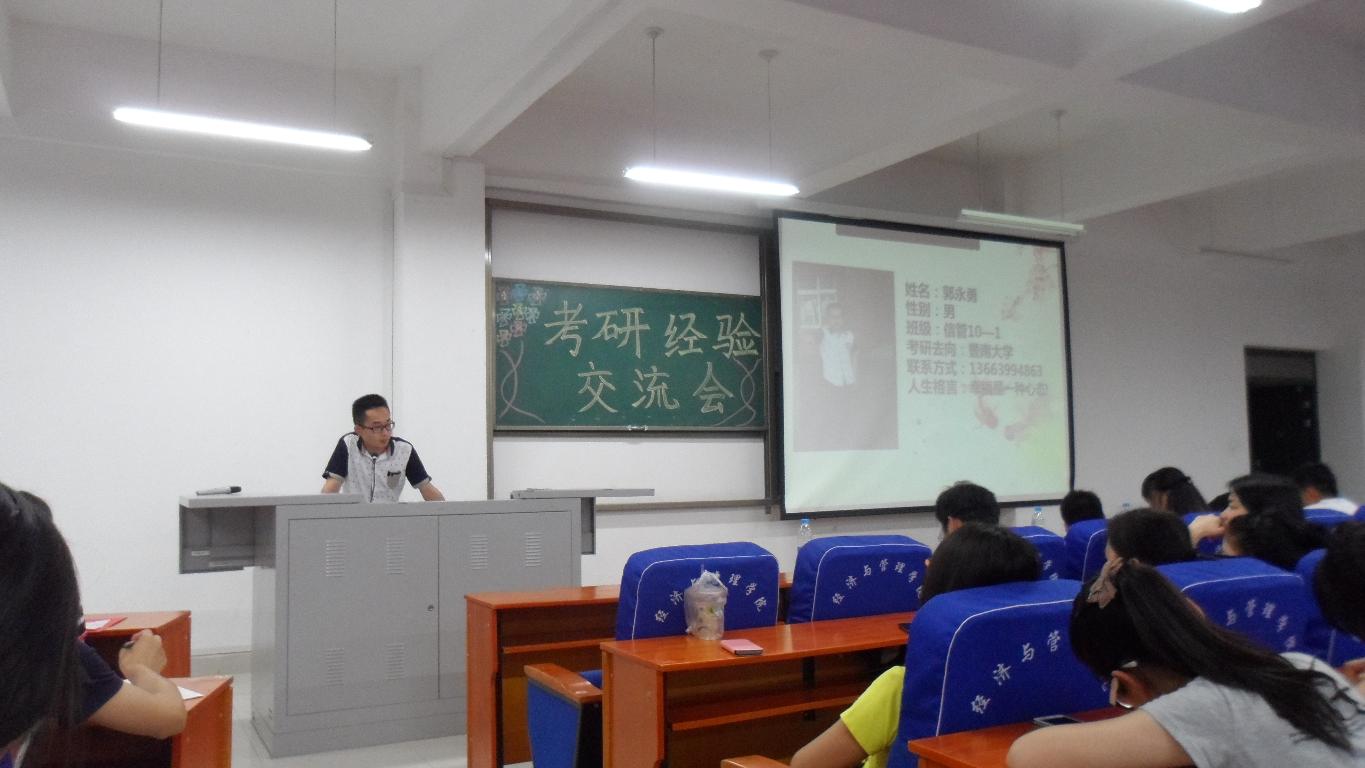 为进一步营造我同学的考研热情,明确考研目标,掌握相关考研技巧考研信息,5月29日晚经济与管理学院在经管楼211举办了考研经验交流会。