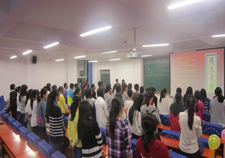 本次主题示范团日活动由我院市场营销14-01班团支部开展,我院年级团总支全体成员、各班团支部书记到场观摩。活动中,市场营销14-01班团支部书记以PPT形式向大家展示了社会主义核心价值观的主要内容,并带领大家回顾了一些历史爱国人物,同学们认真学习并从对社会主义核心价值观的认识、从身边发生的事情,争相分享了自己心中的社会主义核心价值观。《我的祖国》诗歌朗诵、《精忠报国》歌曲演唱以及小游戏的进行使得活动气氛非常热烈、轻松愉悦。