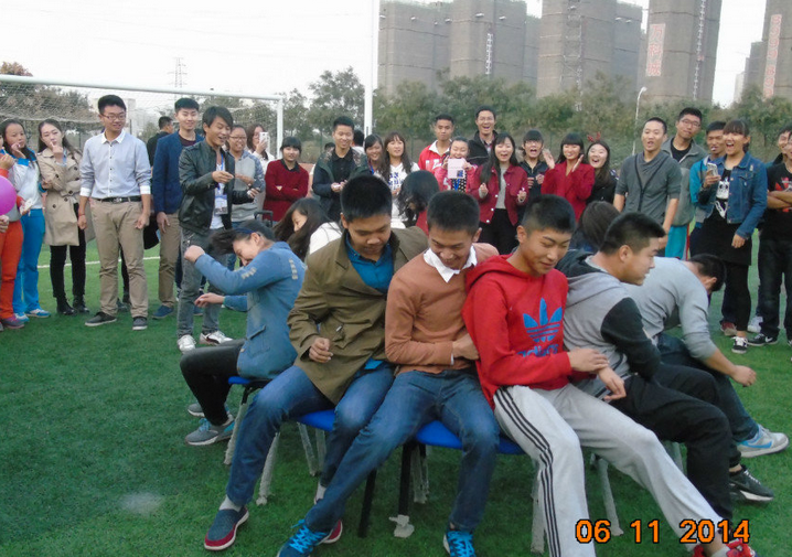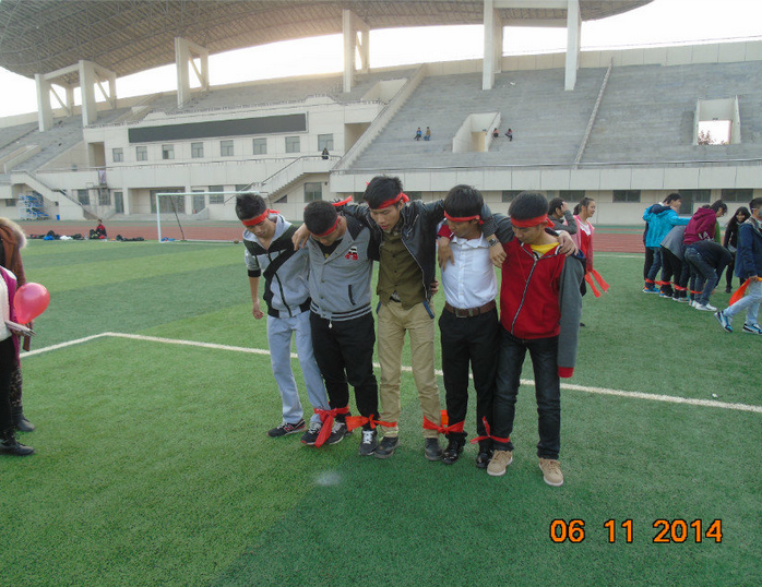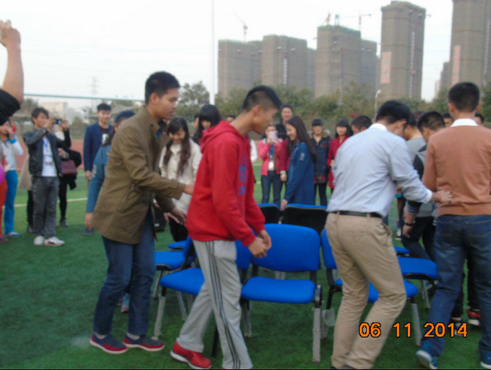 本次素质拓展训练主要包括四项拓展项目:“谁是卧底”、“抢板凳”、“五人四足”和“踩气球”。“谁是卧底”:在场4人中3人拿到同一词语,剩下1人拿到与之相关的另一词语,每人用一句话描述自己拿到的词语,最好不要太过明显,既不能让卧底察觉,也要给同伴以暗示,若卧底撑到最后一轮(场上剩2人时),则卧底获胜,反之,则平民利,这个游戏比拼了大家的语言表述能力、知识面与想象力。“抢板凳”:九个人,八个凳子,由裁判击鼓喊口号,裁判喊停的同时九个人每人抢一个凳子坐下,没抢到的淘汰,直到最后两个人获胜为止,这个不仅考验了大家的反应速度,也极大地活跃了现场气氛。“五人四足”:五个人并排站,相邻的两脚的脚脖子用带子固定在一起,肩并肩喊口号冲向终点,这个训练增强了同学们的团队配合意识。“踩气球”:让每个部出一名参赛队员,队员两个腿上各绑一个气球,队员们互相踩各自腿上绑的气球,两个气球都被踩爆的被淘汰,反之获胜,这个活动培训了大家的协调性和灵活性。
