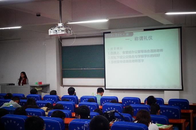 为加强学生干部队伍建设,提升学生干部队伍素质,提高学生干部队伍的礼仪素养和工作能力,5月10日晚,经济与管理学院在经管楼211举办了学生干部礼仪知识培训。