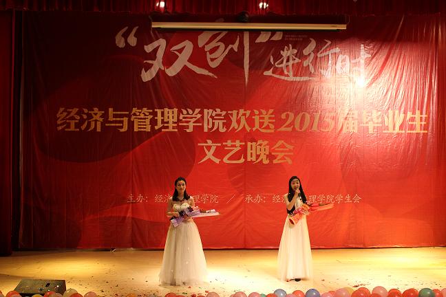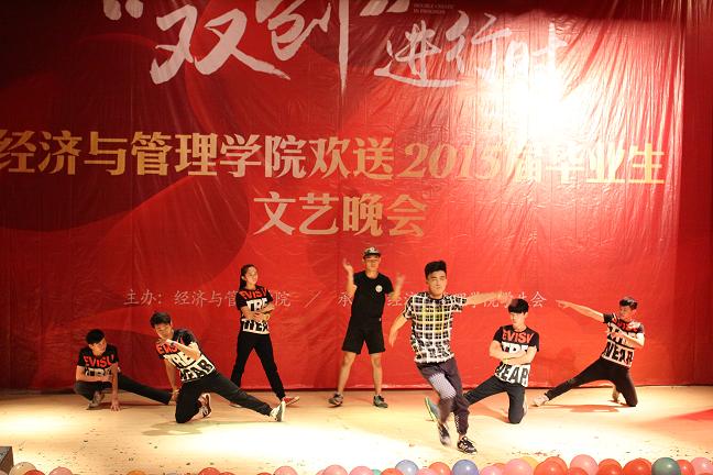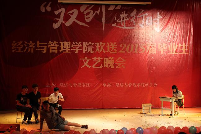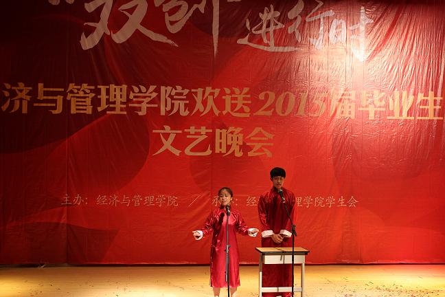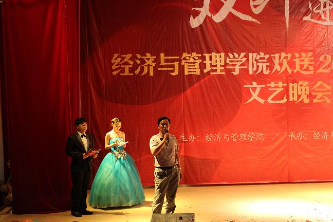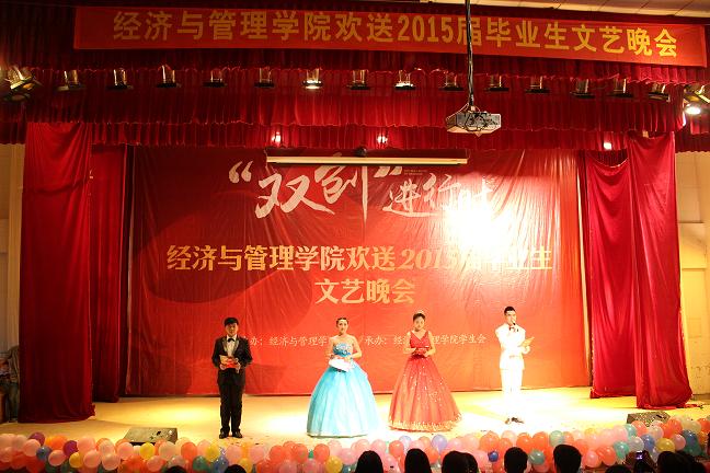 6月8日晚7:00,经济与管理学院在我校科学校区三教楼208举办了欢送2015届毕业生文艺晚会。经济与管理学院党总支书记孙向东、党总支副书记刘洪民、全体专兼职辅导员以及我院毕业生共700余人观看了演出。