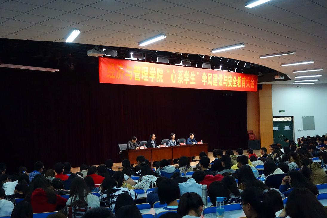 10月28日,经济与管理学院在科学校区大学生活动中心208召开了“心系学生”学风建设与安全教育大会。经济与管理学院院长刘珂、副院长仝新顺、分团委、学工办、教务员、专兼职辅导员以及各班班长、团支书、学习委员、寝室长共500余人参加了会议。会议由副院长仝新顺主持。
