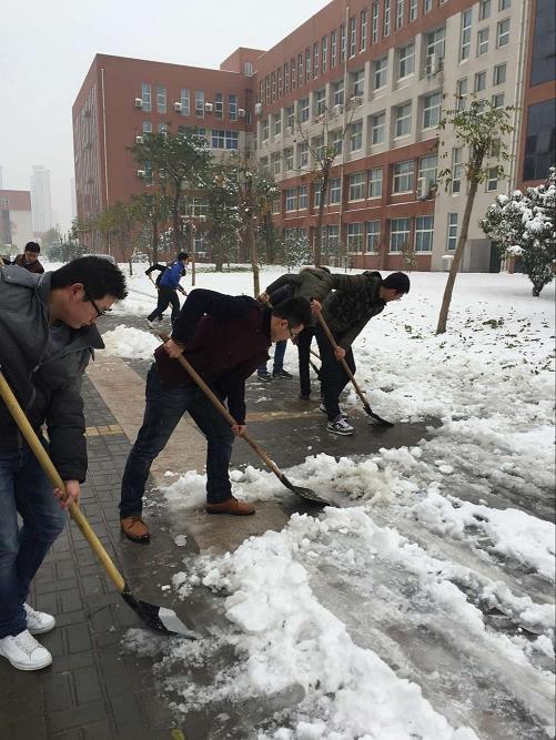在扫雪开始时,学院对扫雪工具进行了合理地分配,并作了详细的任务分工,以保证劳动高效、有序地进行。同时着重强调了安全问题,要求参与劳动的同学在过程中保持秩序,谨慎实施,防止发生滑倒跌伤等意外伤害。在劳动过程中,大家互帮互助,相互勉励,克服了时间紧、任务重、天冷风大等客观困难,最终以很高的质量完成了劳动。