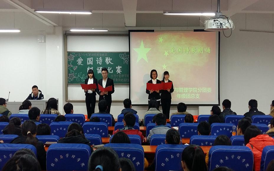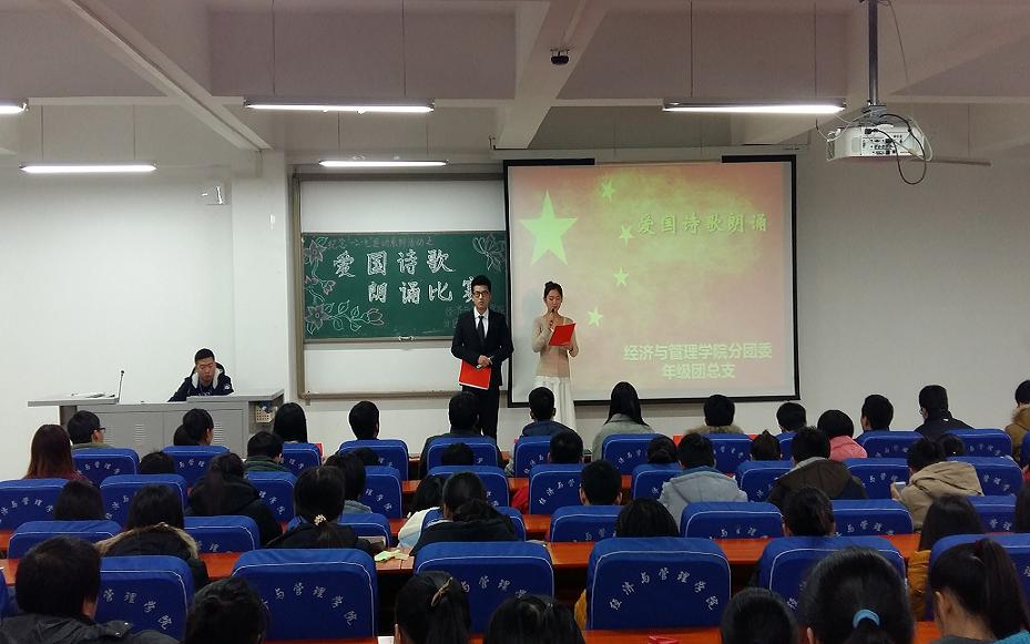为弘扬爱国主义精神,激发广大学生的爱国热情,11月25日19:00,经济与管理学院在经管楼211成功举办了纪念一二·九运动80周年系列活动之爱国诗歌朗诵比赛。