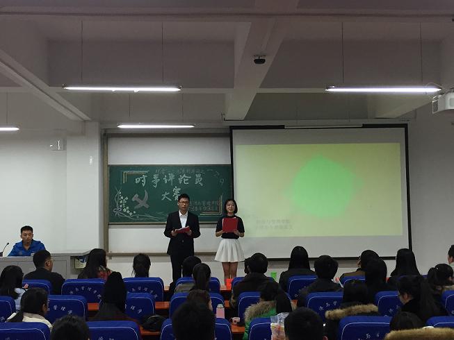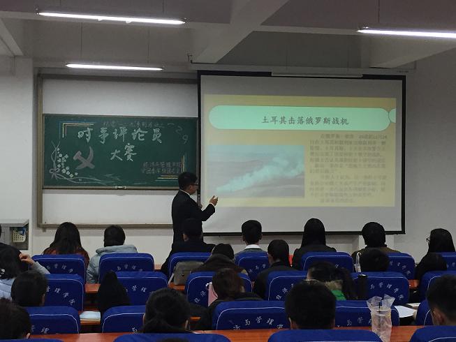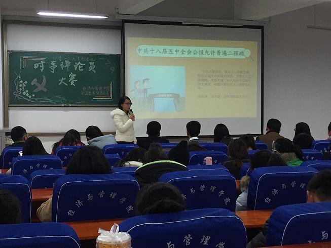 为纪念一二·九运动80周年,不断增强大学生的思想政治素养,促进大学生关心国家时事政治,12月2日,经济与管理学院在科学校区经管楼211举办了纪念一二·九运动80周年系列活动之时事评论员大赛。