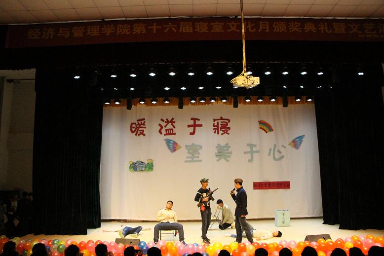 12月9日晚7:00,经济与管理学院第十六届“寝室文化月”文艺晚会在科学校区三教楼208隆重举行。2015级全体新生共550余人观看了演出。