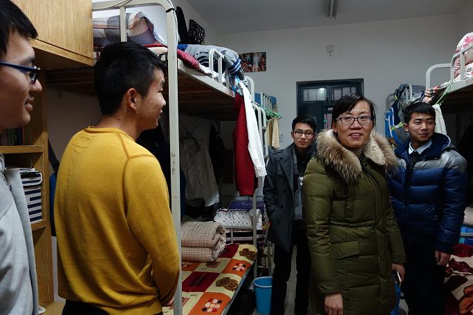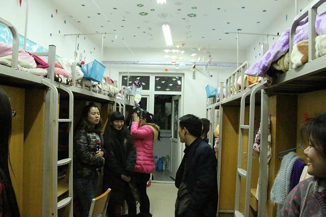 12月11日晚8:00,我院专职辅导员陈章美、时军鸽分两组走访了我院学生宿舍。在走访的过程中,辅导员与学生进行了亲切交流,详细了解学生的思想动态,并就学生在就业、考研、英语四六级考试、期末复习等方面遇到的问题进行了耐心细致的解答。同时对夜不归宿、违章使用电器、宿舍卫生等情况进行了检查,确保宿舍安全、卫生。