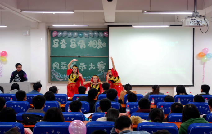本次大赛分“方言电影配音”和“风采才艺展示”两个环节。第一个环节中,各位选手用不同方言演绎,别有一番滋味。会计15-01班的同学,以风趣的方式表演了河北、陕西方言版的《煎饼侠》,选手们乔装打扮,手舞足蹈地模仿视频的每一个细节,俨如在上演一台台小型话剧;信息管理与信息系统15-01班的《捉妖记》片段,一个男生选手的分娩表演,一举一动,惟妙惟肖,大家情绪被调动高涨;此外,其他班级作品主题鲜明,积极向上,充分展示了各自家乡特点。第二个环节中,选手把家乡的风土人情、民俗民情原汁原味的交付给大家。经济学15-01班的新疆舞《快乐的跳吧》舞蹈活泼优美,步伐轻快灵巧,手腕和舞姿的变化极为丰富,让新疆的气息铺满了整个教室;会计15-01班带来的二胡表演《赛马》,其乐曲以磅礴的气势、热烈的气息、奔放的旋律,赢得观众的阵阵掌声;信息管理与信息系统15-01班同学自己改编演唱的朝鲜语歌曲《一次就好》,深情并茂,引起观众合唱并打节拍,又一次掀起全场的高潮。经过激烈的角逐,信息管理与信息系统15-01班获得一等奖,物流管理15-01班、会计学15-02班获得二等奖,会计学15-01班、国际经济与贸易15-01班、市场营销15-01班获得三等奖。