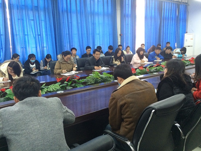 姚老师首先对学生的报到注册、教材发放、补考安排等工作进行具体安排,要求大家重视班级心理健康教育的开展,认真做好心理晴雨表和班级心理委员培训工作,针对校团委组织的寒假社会实践活动,鼓励大家积极参与作品评选活动,充分利用网络平台对学生活动的宣传,加强线上线下的互动。接着,王老师针对2016年大学生创业项目资助申报工作做了具体安排,鼓励大家积极参与申报,同时要求大家继续做好每周的学生自查报告制度。