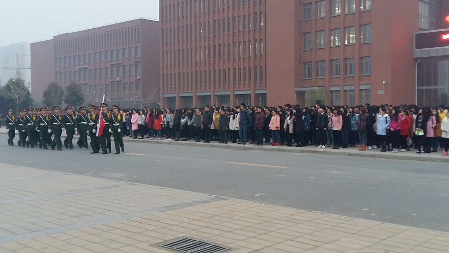 3月7日清晨,经济与管理学院在科学校区主教楼广场举行升国旗仪式暨“珍爱生命安全前行”主题教育。校团委副书记景志勇、经济与管理学院党总支副书记陈章美、分团委书记姚少华以及经济与管理学院2014级、2015级共1500余名学生参加了升旗仪式。