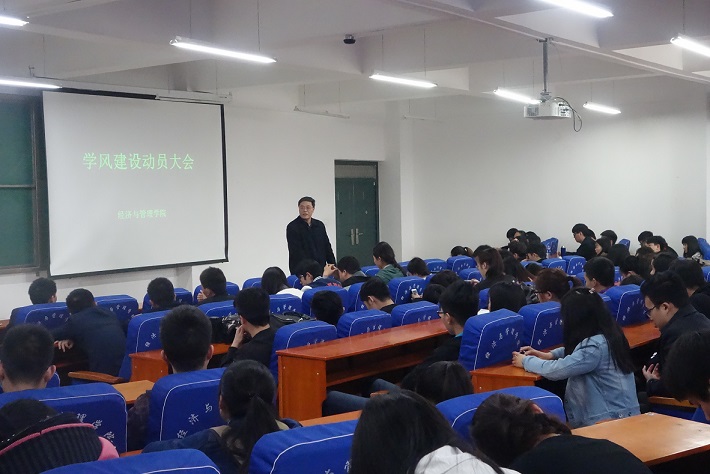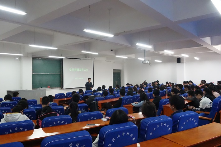 为进一步促进学风建设,营造良好的学习氛围,形成“以学为先、以学为荣”的良好风气,3月18日中午12:30,经济与管理学院在经管楼211室召开学风建设动员大会,经济与管理学院党总支书记邢晟,党总支副书记陈章美,分团委书记姚少华以及14级、15级全体学生干部和部分学生代表参加了本次会议。会议由副书记陈章美老师主持。