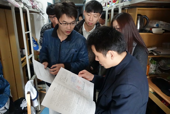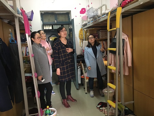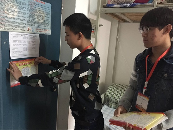 在走访过程中,学生干部分别向每个寝室分发了学生安全知识手册以及“三爱三节”知识宣传页,向大家普及了关于校园安全法律法规及安全常识,解读了“三爱三节”精神,即“爱学习、爱劳动、爱祖国;节水、节电、节粮”。老师们也都走进学生宿舍仔细查看,同学们都热情礼貌地与老师交谈,在交谈过程中,陈书记强调了寝室安全,同时指出学生干部要起到模范带头作用,并要求各班合理安排生活委员做好宿舍巡查工作,并作汇报;还提到宿舍成员之间要和睦相处,加强心理健康委员和宿舍信息员的作用,共同营造一个良好的寝室文化氛围;身为当代大学生,我们要响应新时代党的号召,发扬“三爱三节”的时代精神,在生活中做到节水、节电、节粮,在思想上做到爱学习、爱劳动、爱祖国。