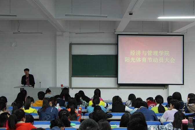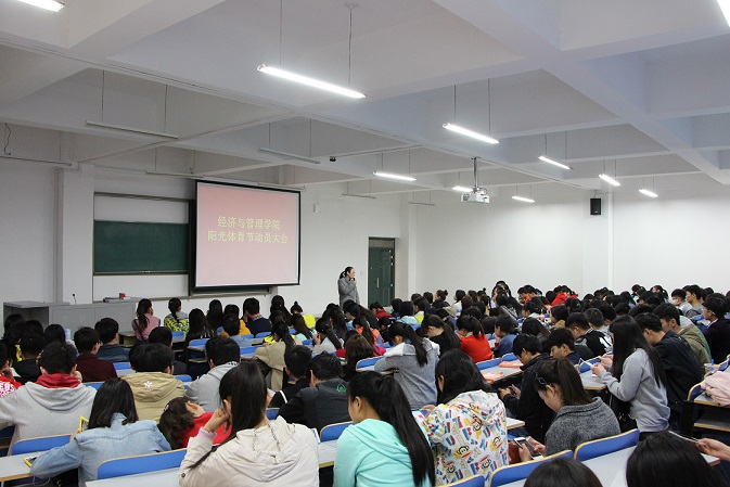 为培养学生良好的身体素质,创造和谐校园文化,充分调动学生参加体育运动的积极性,培养集体精神,体现学院风貌,3月30日中午12:30,经济与管理学院在经管楼309召开了经济与管理学院阳光体育节动员大会。