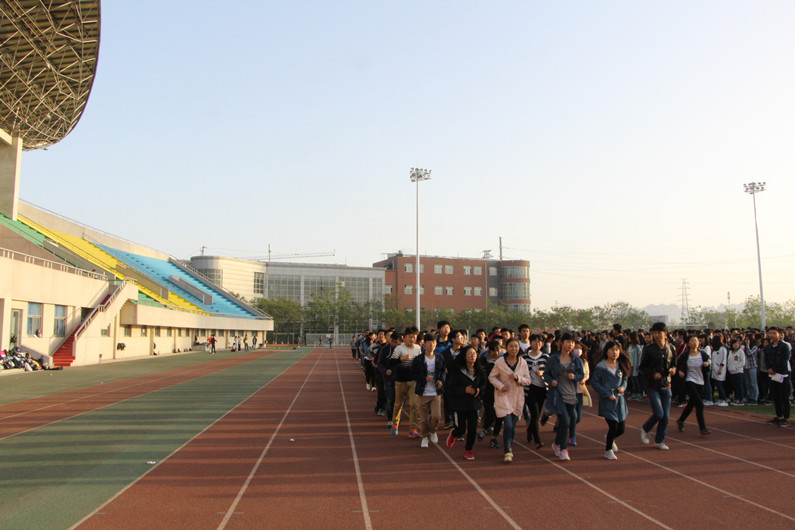 东方欲晓,朝阳初升。6时30分,2014级、2015级20个班级1126名同学准时于科学校区体育场集合,在各班体育委员的组织下,以班级为单位,整齐列队。随着一声令下,同学们迎着清晨的阳光,迈着轻盈的步伐,拉开了早操的序幕。此次早操的内容为绕科学校区足球场慢跑三圈。整个过程中,同学们通过响亮有力的口号调整步伐,队伍中的同学相互帮助、彼此鼓励、坚持跑完全程,口号声、喘息声、脚步声,使得清晨的校园充满了温暖,更成了校园里一道亮丽的风景。