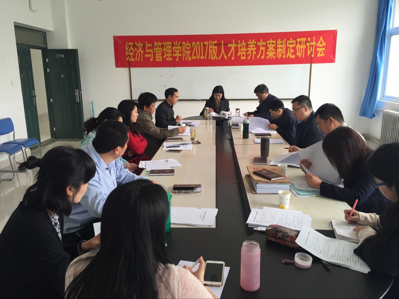 2016年4月20日上午9点,经济与管理学院在科学校区经管楼219会议室召开了2017版人才培养方案制定研讨会。邢晟书记、刘珂院长、陈章美副书记、各系主任和参与调研的骨干教师代表参加了此次会议。会议由仝新顺副院长主持。