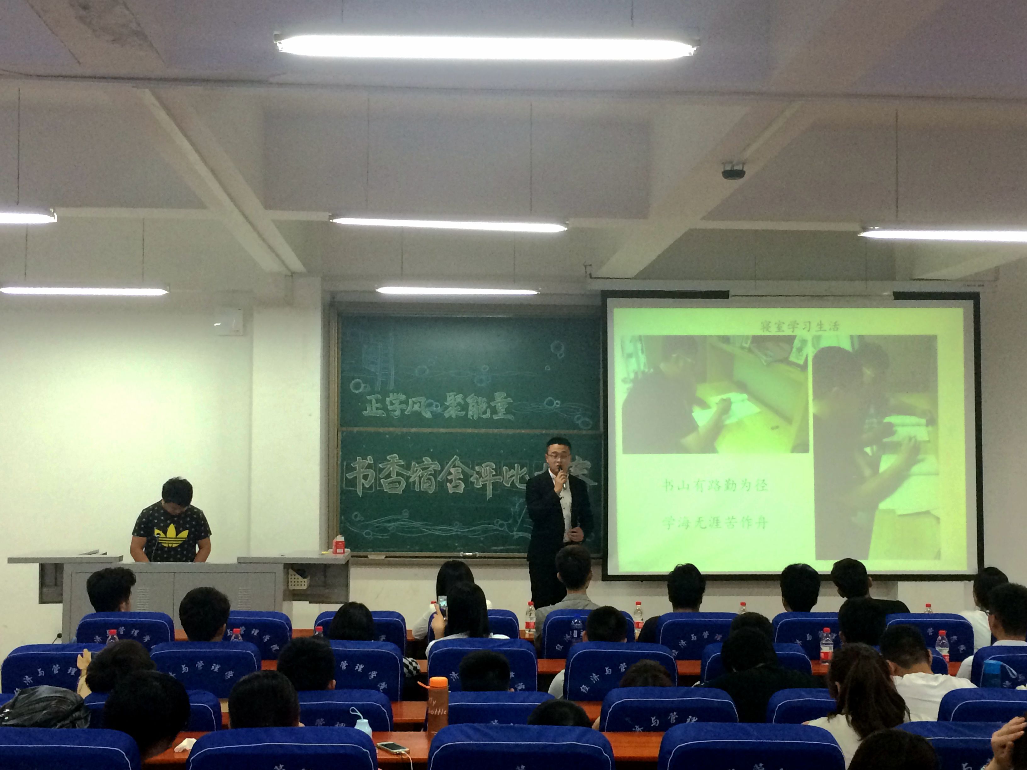 为响应学校学风建设的号召,激发同学们的学习热情,营造良好的学习生活氛围,进一步推进寝室文明建设,经济与管理学院于5月6日在经管楼211举办了“书香宿舍”评选大赛。